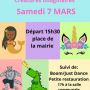 Nous vous attendons nombreux et déguisés le samedi 7 mars, à partir de 15h30 au départ de la place de la mairie pour un parcours dans le village, avant de retrouver la Sou de l'école pour une boom "Just dance" et une petite restauration.